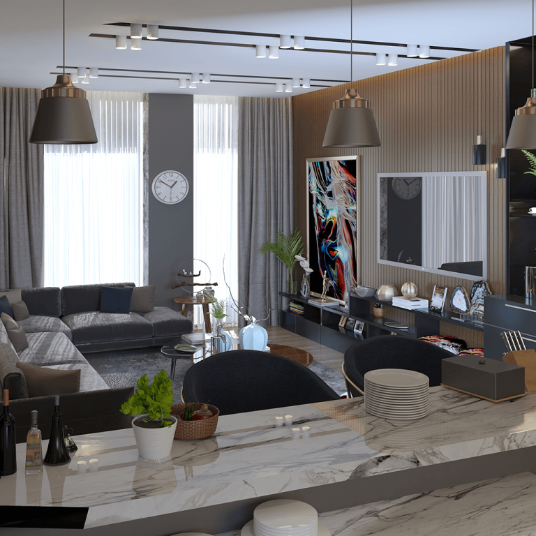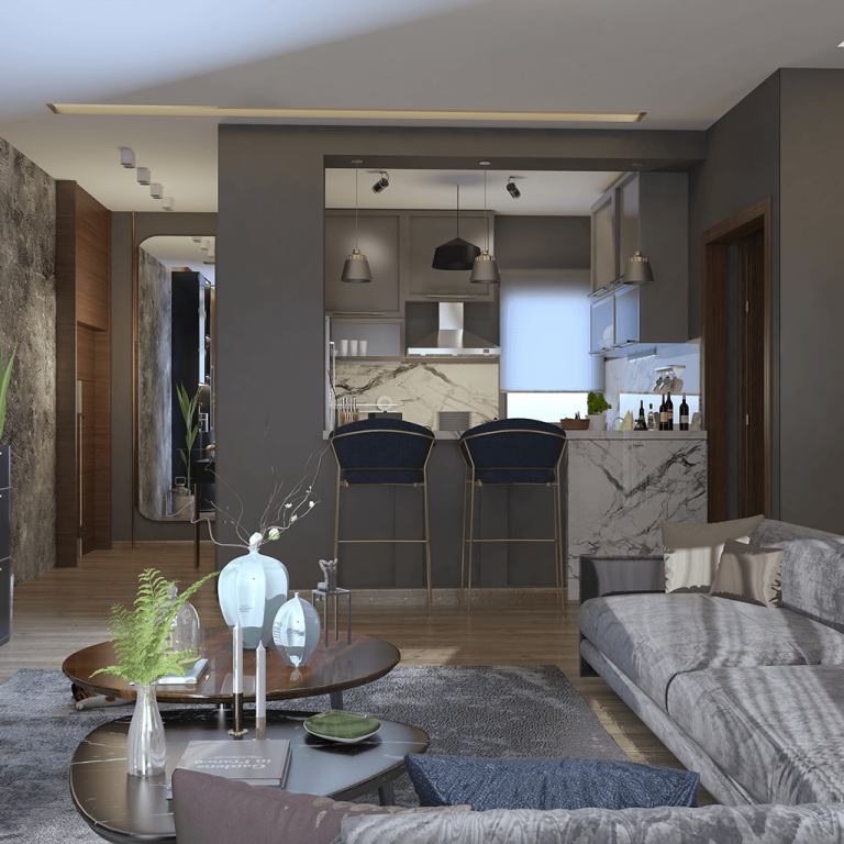 The design consists of tones of grey with a stark of brown and a tableau added in for contrast. The aim was to create very rich and high-end spaces . This was achieved by our great attention to the finest details as we made sure to maintain high-quality standards throughout our designs.