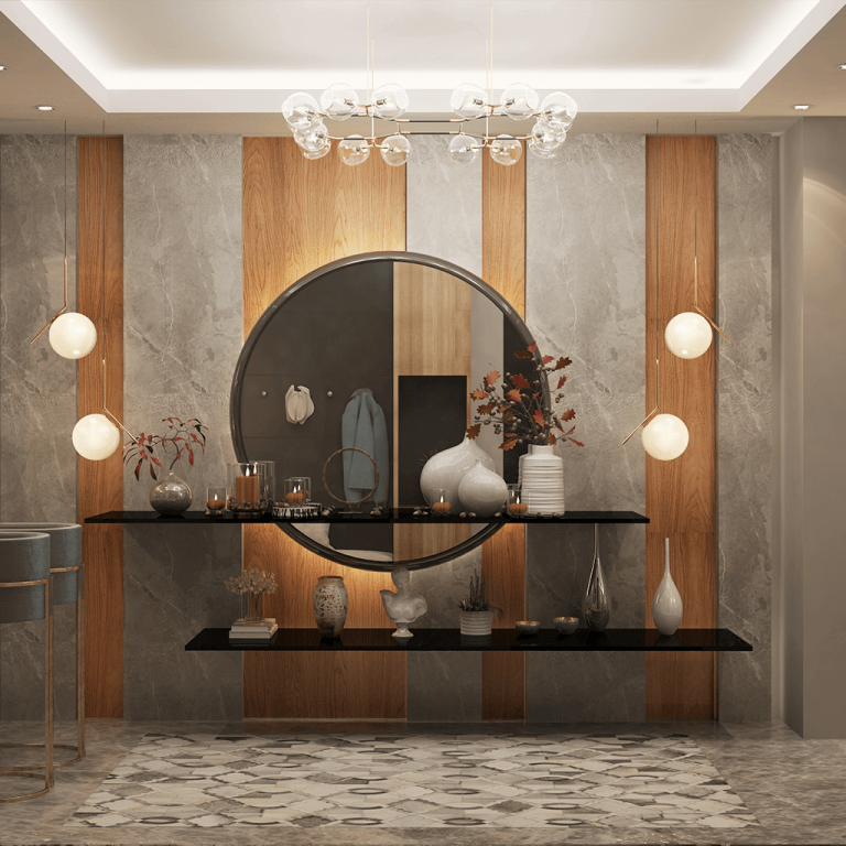 The mixture of colours which are introduced into the grey and light brown add a subtle light-hearted layer to the design .